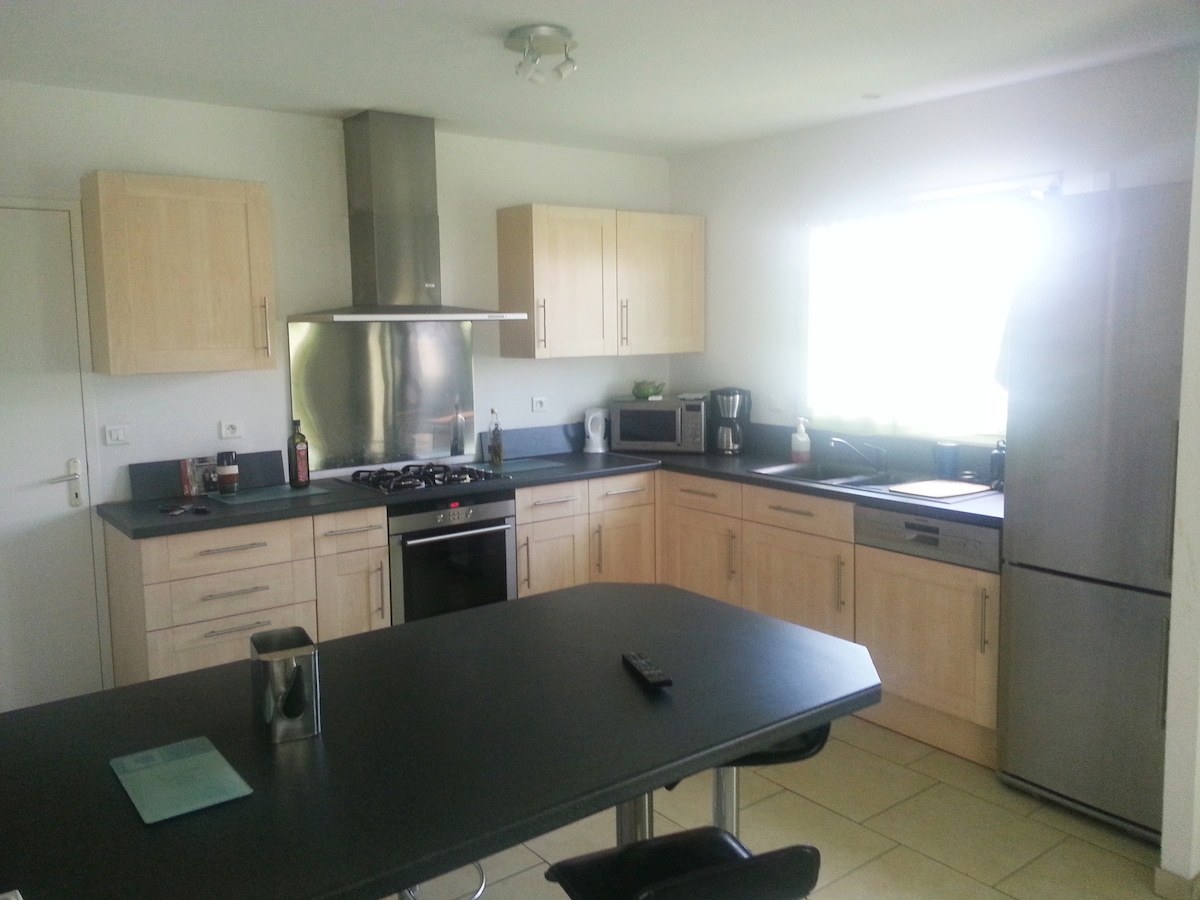 Estamos en un callejón sin salida muy tranquilo a 2 minutos de las principales carreteras norte/sur y este/oeste. Casa de pueblo con terraza exterior privada, perfecta para tomar una copa o comer. En la planta baja, una gran cocina totalmente equipada. En el 1er piso, un amplio dormitorio, un gran salón, un baño-wc. En la 2ª planta, un amplio dormitorio (BZ con colchón Dunlopillo 140) equipado con escritorio y silla de oficina (perfecto para teletrabajar).