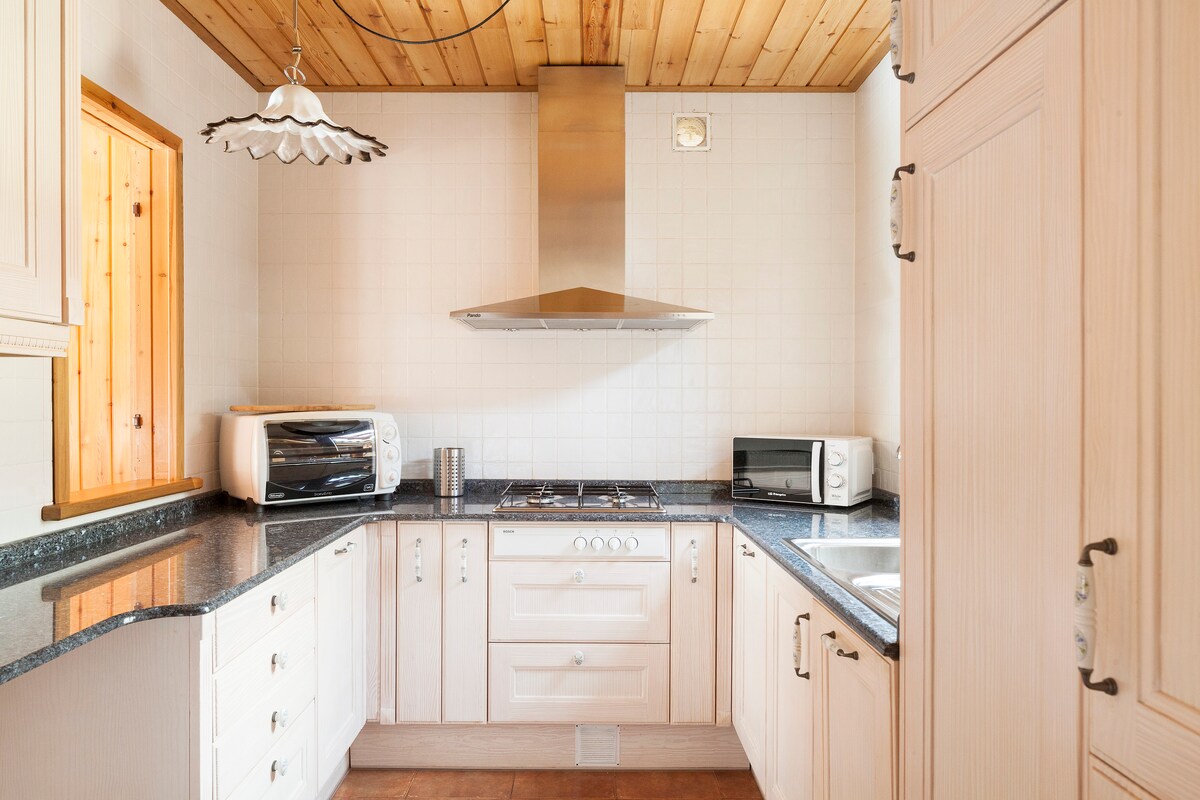 casa de campo a estrenar, entorno tranquilo, vistas a las montañas. Terraza equipada con barbacoa, zona verde, aparcamiento. ¡Ideal para reponer energías! La casa tiene dos dormitorios. Una con una cama de 140/190 cm, la otra, dos camas de 90/190 cm. Un cuarto de baño, aseo y una sala de estar con zona de cocina.