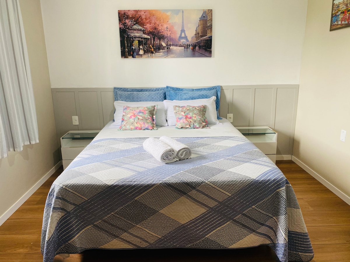 Apartamento/Estudio, decorado, aireado, limpio, seguro, acogedor y bien ubicado en el centro de Jaraguá do Sul, frente a SCAR, cerca del centro comercial, gasolinera, supermercados y farmacias. El estudio cuenta con garaje cubierto, portón electrónico, ascensor, wi-fi, TV, aire acondicionado, minibar, microondas, cafetera, hervidor eléctrico y secador de pelo.