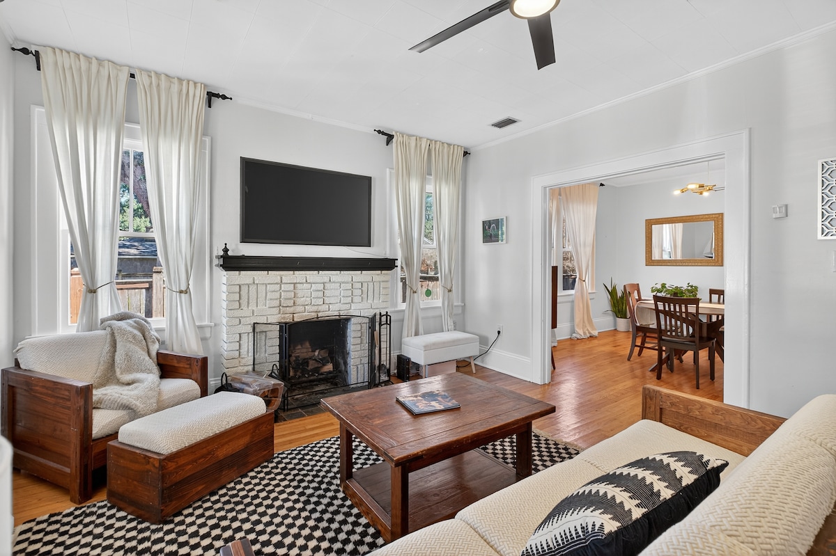 This charming bungalow is located in the heart of walkable Riverside; Jacksonville's most fun neighborhood. Enjoy a king bed, smart speakers, fast WiFi, and streaming channels, as well a fully stocked kitchen and a backyard with adirondack chairs, an electric grill, a fire pit, and even 'smores kits. Use our custom recommendation guide to explore local shops and restaurants on our cruiser bikes (complete with cup holders and cell phone holders). Private driveway parking is included, too.