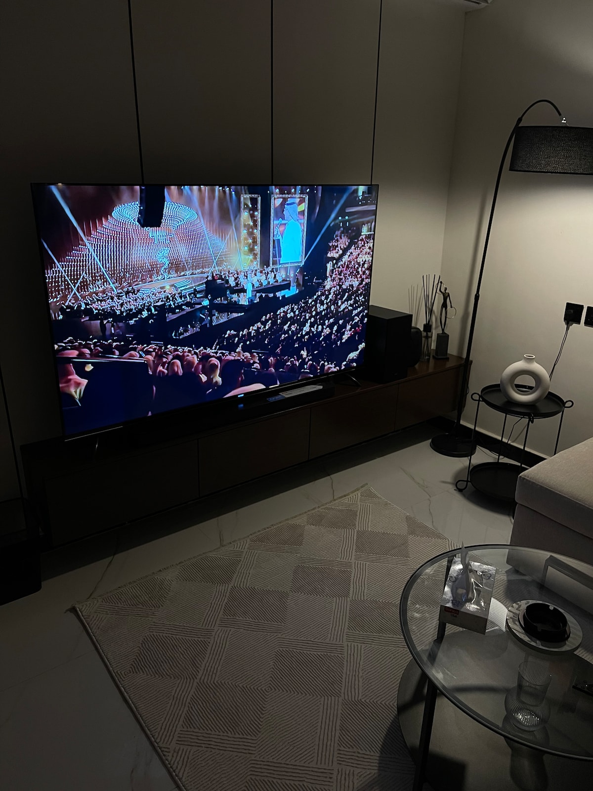 Un apartamento moderno diseñado para una estancia excepcional, situado en uno de los mejores barrios de Riad con unas vistas impresionantes de KAFD. Cuenta con una zona de estar al aire libre con pantalla y proyector para disfrutar de las noches. Para tu comodidad, la cama incluye una capa adicional de 14 cm de alta calidad. «También ofrecemos servicios de coordinación de eventos para ocasiones especiales (incluyendo pasteles y accesorios) por una tarifa adicional con reserva previa, lo que garantiza una experiencia inolvidable»