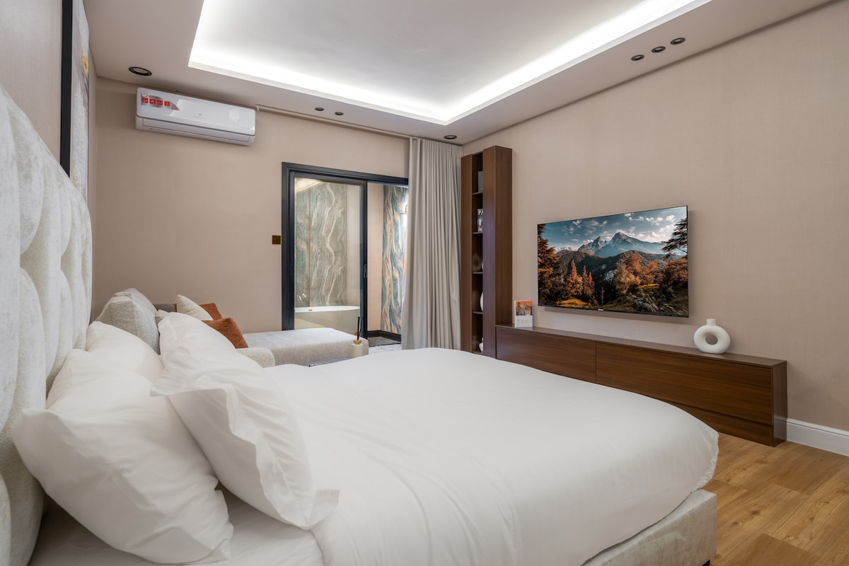 Este lugar único tiene un estilo propio, diseñado para ofrecer comodidad, elegancia y un toque de lujo. Cada habitación está cuidadosamente amueblada con una decoración elegante y acabados de alta gama. Disfruta de servicios de primera calidad que incluyen una experiencia de cine VIP, televisores de pantalla plana QLED, máquinas de té/café, secadores de pelo, toallas suaves y un paquete de bienvenida de cortesía. Ya sea que estés aquí para una escapada corta o una estancia más larga, te sentirás como en casa con nuestras comodidades modernas y toques personalizados.