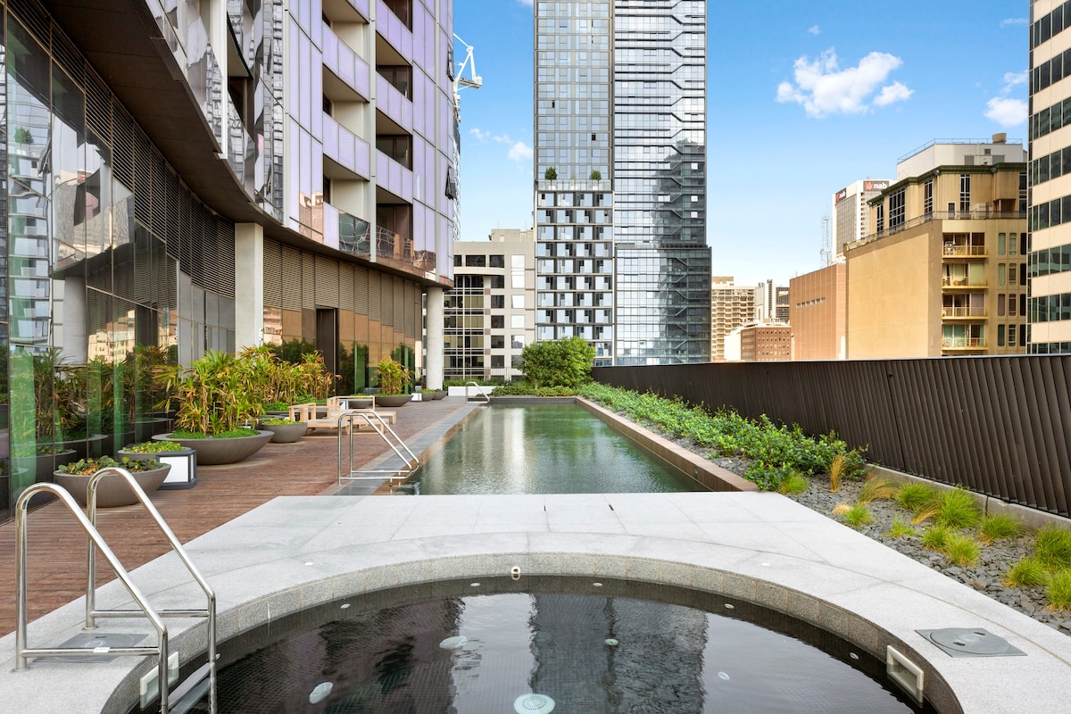 1 dormitorio en el centro de Melbourne: oasis urbano/piscina y gimnasio