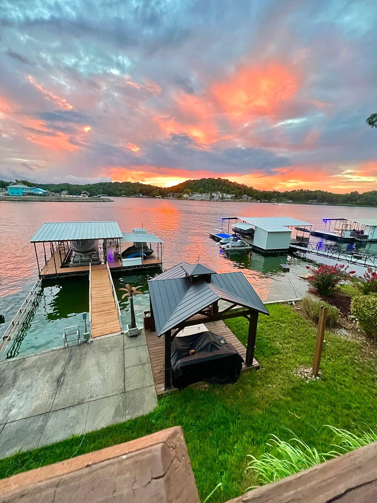 Casa de madera con vistas al atardecer en el lago de los Ozarks