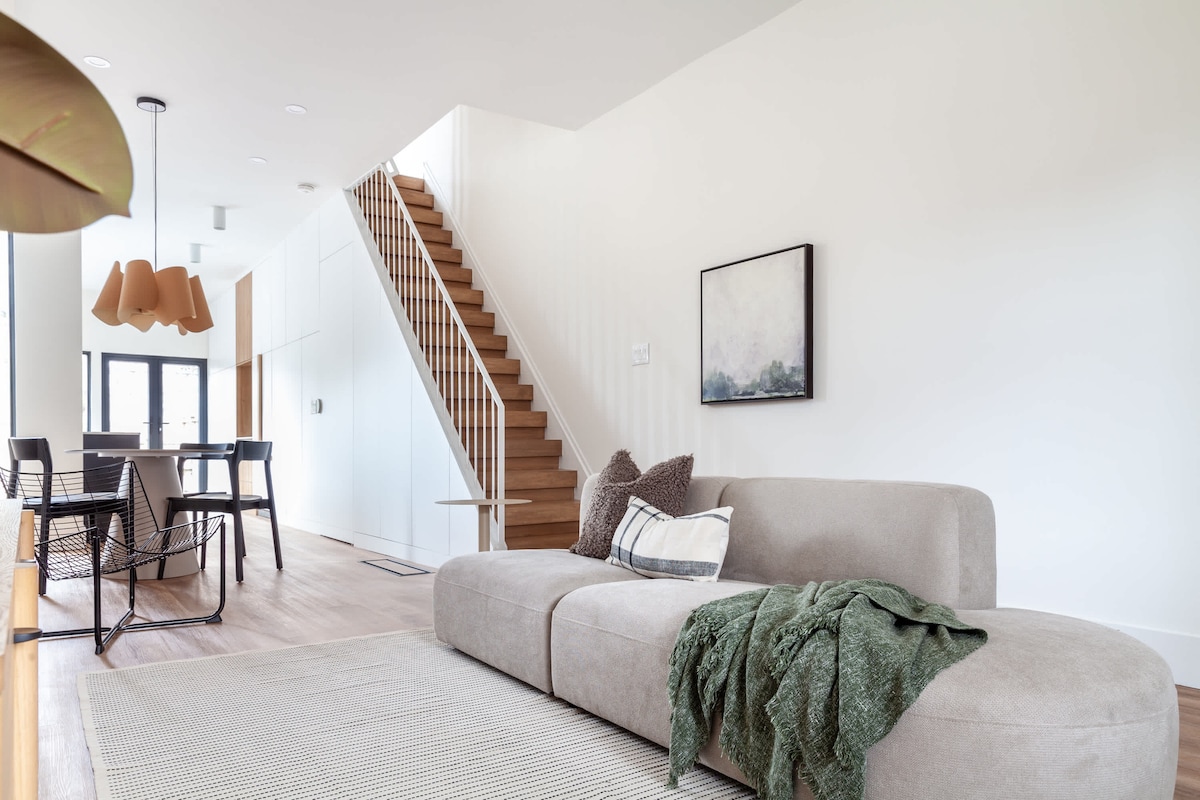 This beautifully designed townhouse blends modern minimalism with warm, natural textures. Featuring two serene bedrooms, a sleek kitchen, and a sunlit open-concept living space, it’s perfect for extended stays. Enjoy curated furniture, stylish finishes, and thoughtful details throughout. Whether you're relaxing on the plush sofa or cooking in the streamlined kitchen, this space offers comfort, style, and calm in equal measure.