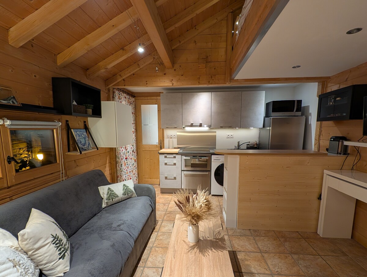 LES 2 ALPES 1650 – DÚPLEX de 40 m², completamente renovado en 2021 con materiales nobles y cálidos. Frente a la nieve a 350 m, telesilla sector «Diable». El estilo montaña chic, la alianza del negro y las maderas trabajadas te proporcionarán una sensación de bienestar. Las 2 plantas se han reorganizado por completo para optimizar la ergonomía sin renunciar a la estética. Desde este pequeño y acogedor nido, podrá disfrutar de las excepcionales vistas panorámicas de la mítica roca de la Muzelle.