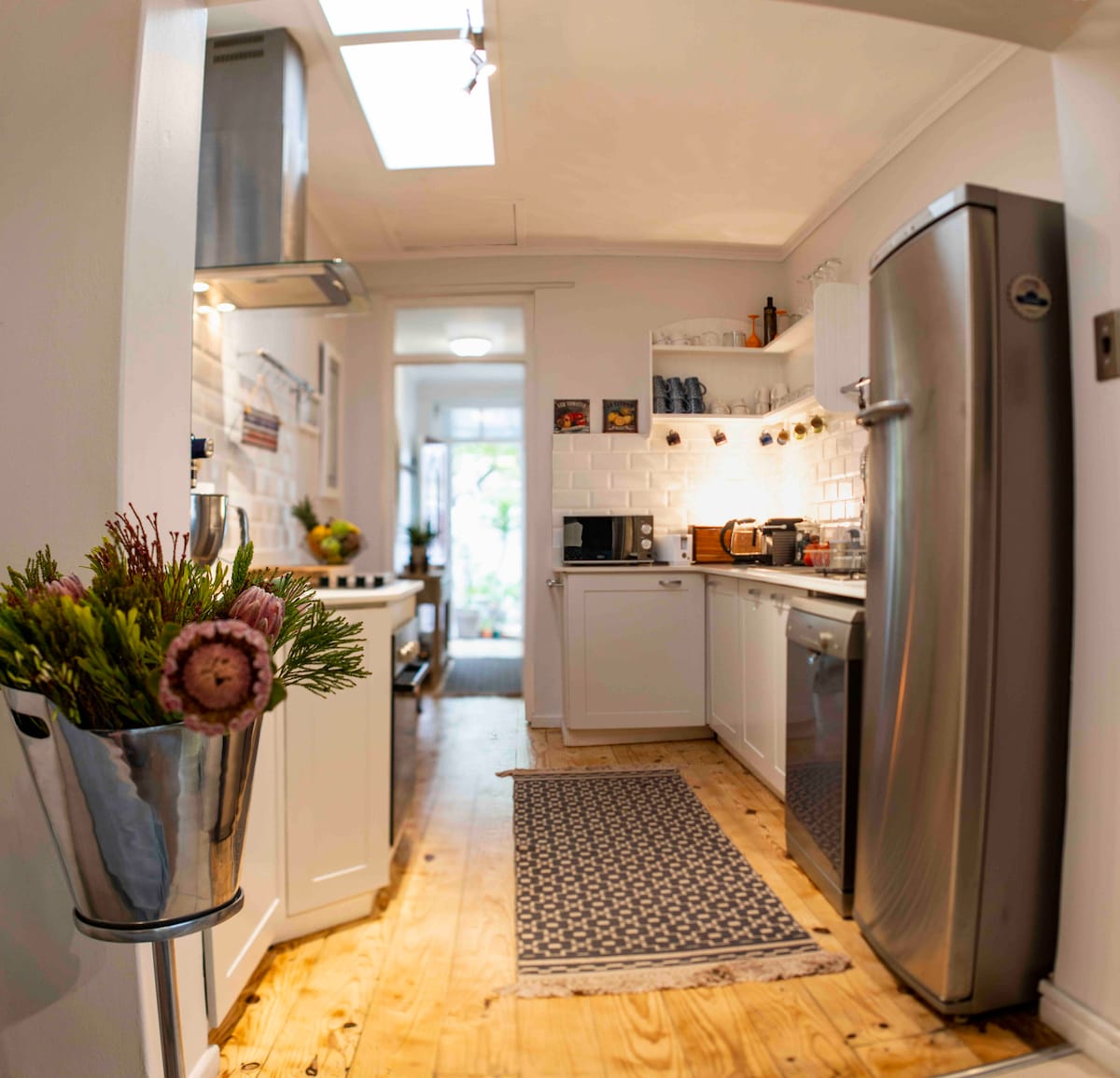 Justo al lado del paseo marítimo de Sea Point, esta hermosa casa victoriana tiene un interior renovado ultraelegante. El altillo estilo loft sirve como tercer dormitorio, estudio de yoga, oficina o simplemente como un espacio tranquilo para retirarse. Los cafés y restaurantes de Sea Point están a poca distancia a pie, y las mejores playas de Ciudad del Cabo están a la vuelta de la esquina. Patio soleado para relajarse y pasar las tardes en el stoep, mientras que la chimenea te mantiene cómodo. 2 camas. Sofá cama adicional en el altillo. Aparcamiento gratuito y seguro en la calle. UPS
