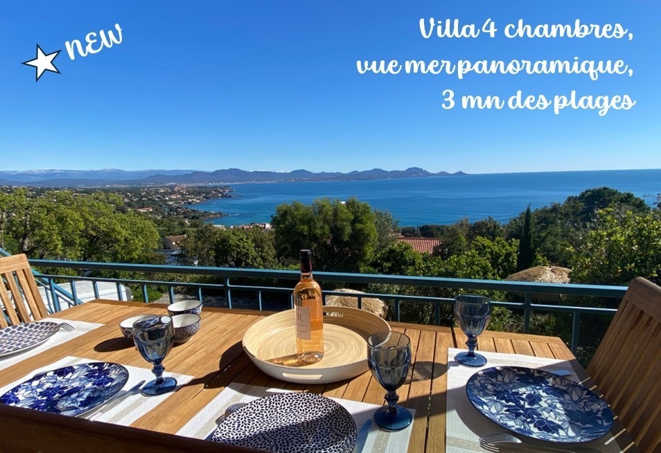 Villa RECIENTEMENTE RENOVADA en St Aygulf con terraza privada con vistas al mar, con capacidad para 4/6 personas. A 10 minutos a pie de la Place de la poste, a 10 minutos en coche de la playa. Entrada privada de uso único con espacio de estacionamiento cerrado fuera de la calle. Límites ajardinados seguros a su alrededor, más terraza a la parte trasera con parrilla. Aire acondicionado/calefacción y wifi. Dos dormitorios grandes y espaciosos con persianas y sofá cama. Cuna para niños y silla alta disponibles. Ambiente encantador, tranquilo y aislado. Habitaciones en un solo nivel, buenas para las familias. Los perros son bienvenidos.