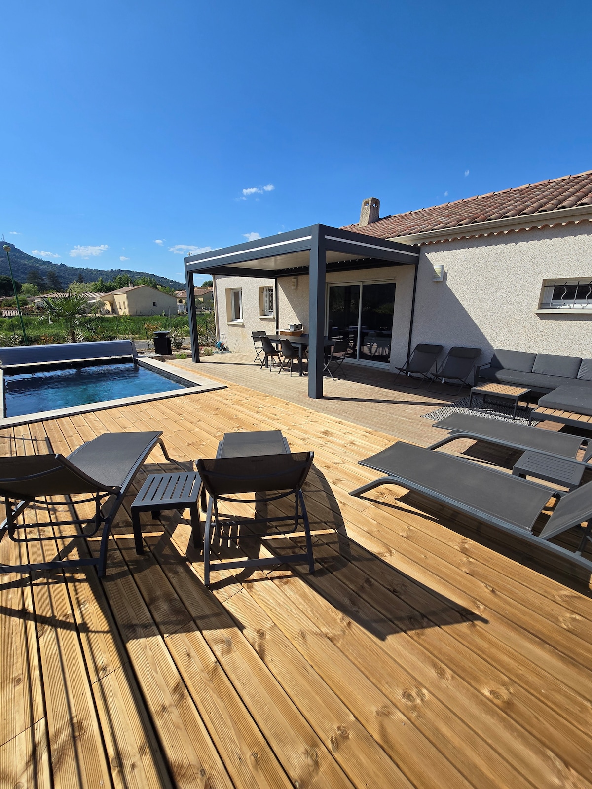 Situada en un entorno tranquilo, cerca de los acantilados de Chassezac, la villa ofrece unas vistas deslumbrantes del bosque La calma absoluta y las numerosas vistas de la naturaleza, salvaje y majestuosa, hacen de esta casa el lugar perfecto para recargar energías y disfrutar del clima mediterráneo del sur de Ardèche. La dulzura de la vida en Ardèche le espera, es la hora del aperitivo en la terraza , a la hermosa luz de la puesta de sol.