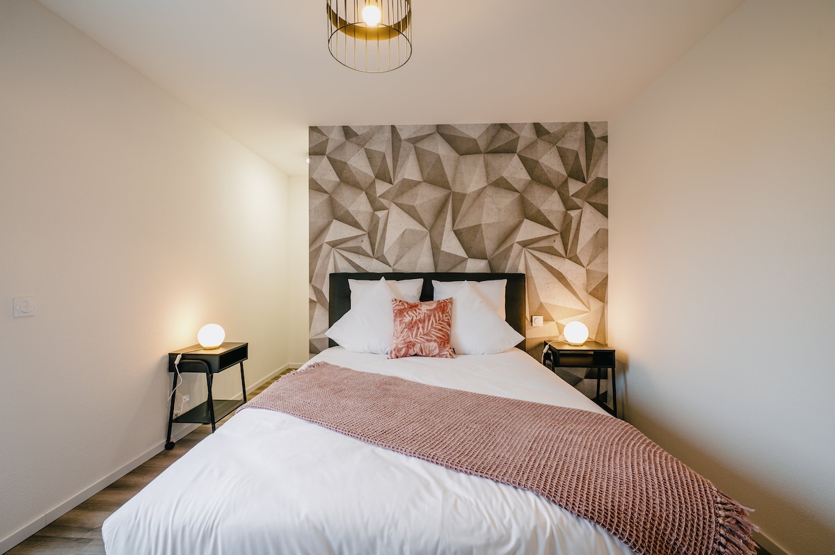 Magnífico alojamiento nuevo con jacuzzi, en un entorno tranquilo e íntimo, cerca de Europapark y Rulantica. Ubicado en el corazón de Alsacia, entre Estrasburgo y Colmar. Venga a disfrutar de su spa privado, en un diseño moderno y depurado. Ideal para una escapada en pareja. El alojamiento consta de una cocina equipada, una zona de comedor, una sala de estar con dos meridianos, una televisión inteligente con NETFLIX y WiFi. Arriba, una gran suite le espera con acceso directo al baño.