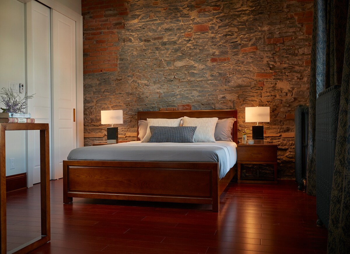 Este departamento elegante y moderno está en la casa del siglo 18 con techos altos y grandes ventanales en el popular vecindario de East Hill. Este barrio es muy transitable y está muy cerca de todos los servicios y lugares de interés, incluidos: a 10 minutos a pie del lago, a 3 minutos a pie del centro de la ciudad, el mercado de agricultores, el museo de la Casa Glanmore y los senderos a lo largo de la bahía de Quinte y el río Moira. También puedes dar un paseo rápido (20 minutos) para experimentar las bodegas del condado de Prince Edward y el Parque Provincial Sandbanks.