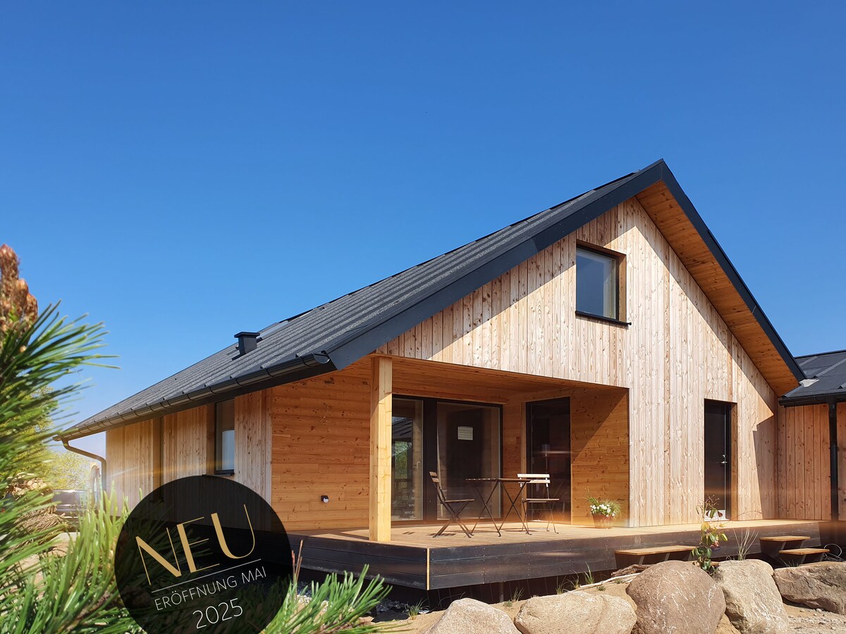 "Mar a la vista" es un exclusivo chalet de ensueño con vistas al mar (150 m playa natural Salzhaff) para hasta 5 personas. Planta baja: cocina abierta, baño con ducha, inodoro separado y acogedor salón relajante con vistas panorámicas, chimenea eléctrica y SmartTV de 50 pulgadas. 2 dormitorios en la planta superior, dormitorio principal con vistas al mar. Los niños pueden relajarse arriba. Amplia terraza cubierta orientada al sur, segunda terraza al lado del lago. Secador de pelo y lavadora disponibles, sauna con vistas al mar. Un servicio de lavandería bajo petición por una tarifa adicional.