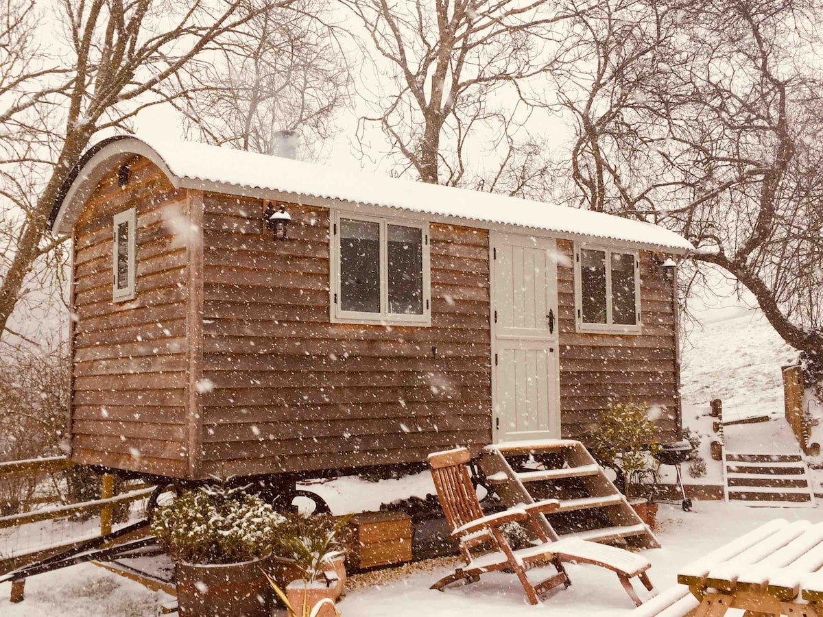 Una dicha autónoma. Una cabaña de pastor única con su propia ducha/inodoro. Cama doble cómoda. Tranquilo, acogedor y muy relajante. Cierra la puerta al mundo exterior por un tiempo y relájate totalmente disfrutando de las vistas desde la cama y admira el oscuro cielo estrellado por la noche. Encantador. Cálido y acogedor en todo momento con una súper estufa de leña. Tu propio espacio privado al aire libre, excelentes vistas, paz y tranquilidad. Enciende la barbacoa o da un paseo directamente desde tu puerta a través de los hermosos senderos y campos. Aparcamiento privado.
