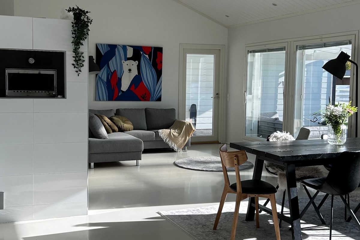 Puedes crear recuerdos en este destino único y familiar. La casa de campo está en un paisaje costero único en su propia propiedad. ¡Una hectárea de tierra solo para ti! ¡Privacidad y tranquilidad totales! Experimentarás una paz completa, actividades ¡y disfruta de todos los servicios! ¡El alojamiento está orientado directamente al norte, que es la mejor manera de ver la aurora boreal en el cielo!