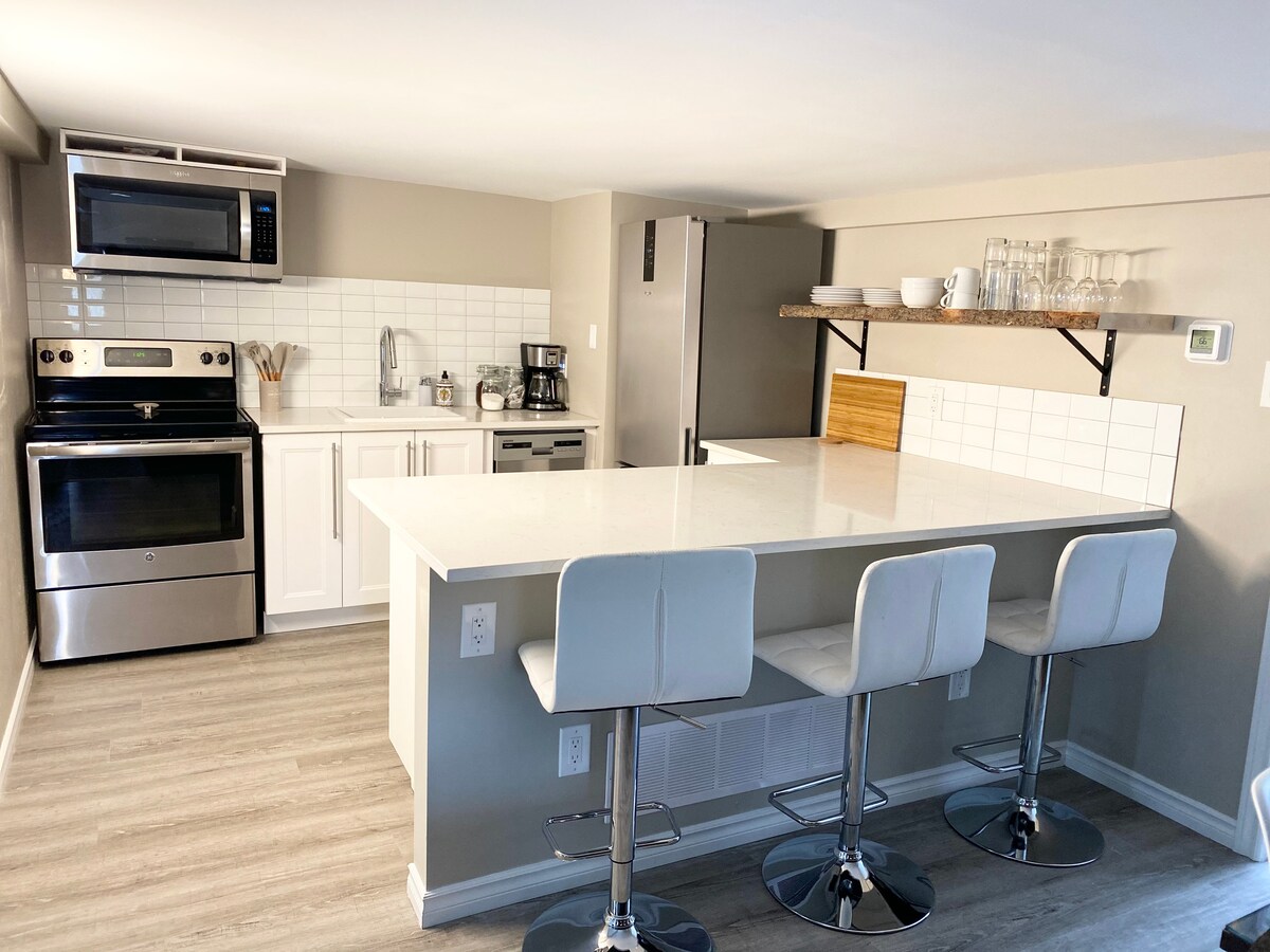 La Gallery Suite, cerca de Locke St. y McMaster, es ideal para estancias de negocios o de placer. Esta luminosa suite de concepto abierto con dormitorio separado cuenta con obras de arte únicas del artista de Guelph Ryan Price. Ubicada encima de una tranquila clínica de RMT, disfrutarás de una estancia tranquila y privada. A poca distancia a pie de tiendas y cafeterías de moda. Aparcamiento gratuito incluido para tu comodidad. ¡Reserva ahora para experimentar una mezcla de comodidad, arte y conveniencia!