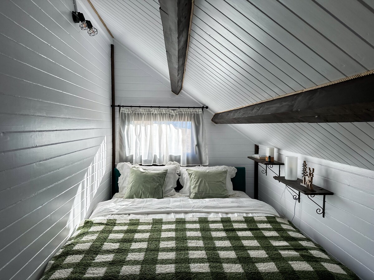 Descopera un tiny house unic, creat pentru intimitate si relaxare. Spatiul este gestionat foarte eficient, iar interiorul este creat manual, cu materiale reciclate. Casa este incalzita automatizat, cu peleti din lemn si flacara adevarata. La etaj veti descoperi toaleta si cabina de dus separata. Atentie la cele trei trepte verticale, acestea pot fi dificile pentru persoanele cu mobilitate redusa! Va rugam sa nu folosit aparate electrice cu putere mai mare de 1000W! Casa este adult-only.