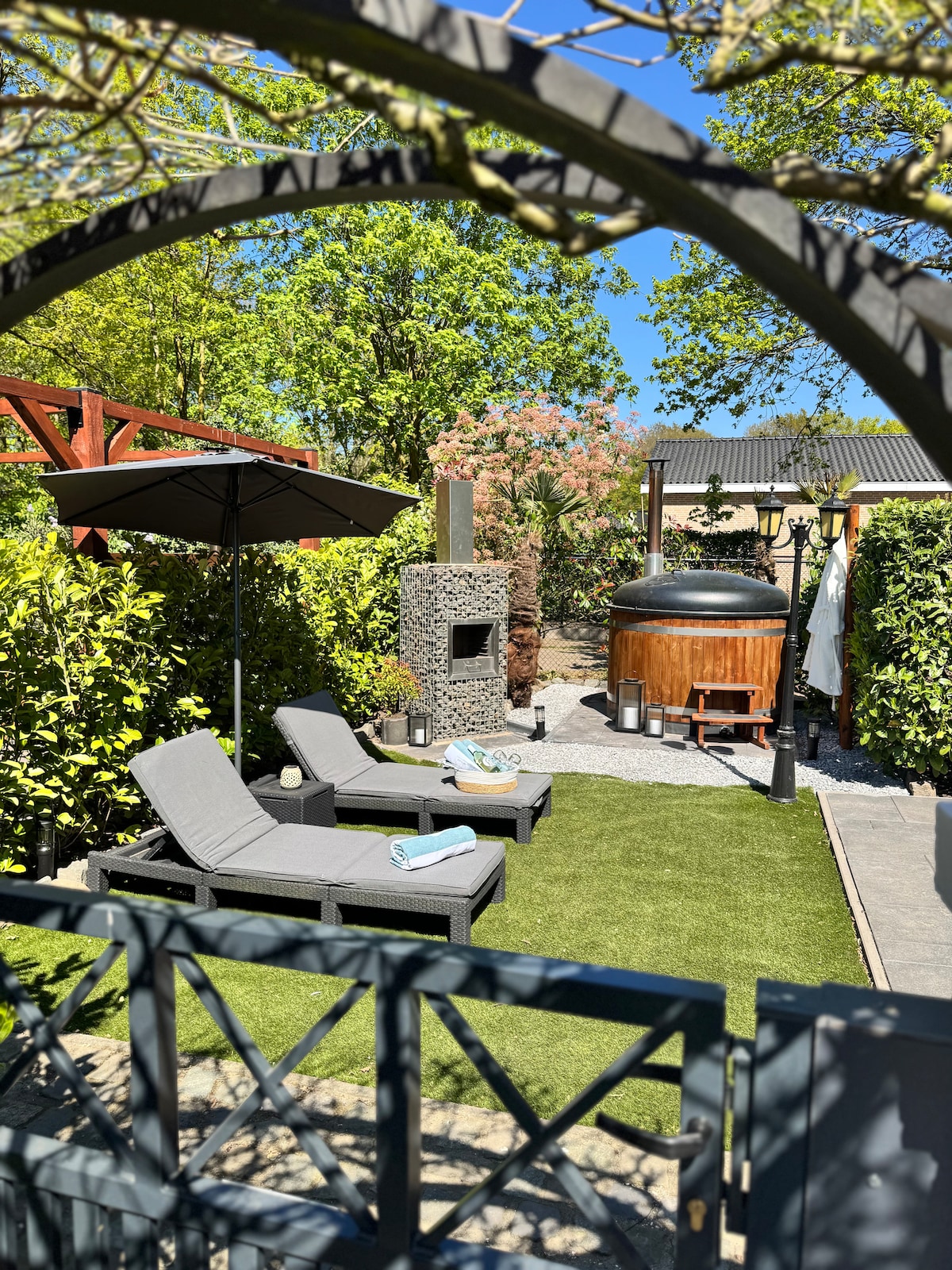 El apartamento de vacaciones está situado en un exuberante jardín verde en las afueras de Zegge, un pueblo entre Breda y Roosendaal. El jardín natural, que está completamente a tu disposición, está lleno de mariposas, insectos y pájaros. Leer en la hamaca, jugar a las petancas, encender un fuego, cocinar con productos del huerto... ¿Quieres salir a caminar o a montar en bicicleta? Si nos indicas cuáles son tus intereses, nos encantaría darte algunos consejos.