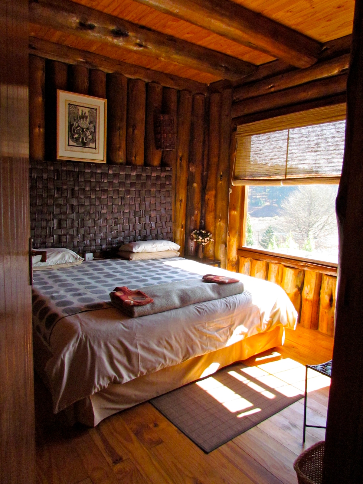 La cabaña se encuentra en un bosque de hoja perenne. Da una sensación de anticipación para que las hadas y otras criaturas del bosque te den la bienvenida. El bosque ofrece total privacidad. Es un lugar donde los visitantes pueden sentirse solos con la naturaleza. Las fiestas de aves y los monos samango se alimentan en los árboles. La cabaña Log tiene capacidad para cuatro huéspedes. Hay paseos cortos a lo largo del arroyo de montaña y puedes ver pintorescas cascadas.