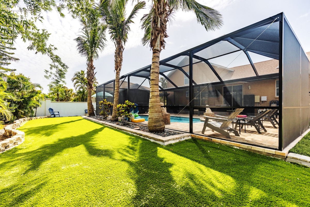 Casa unifamiliar privada de 3 dormitorios a 4 millas de playas de arena blanca del golfo Longboat Key y Anna Maria Island. Casa con PISCINA SALADA CLIMATIZADA con acceso a la playa en bicicleta. Distribuido en el patio trasero extragrande con su propia piscina privada y sala de estar, con un patio de césped artificial y un putting green, y un hermoso paisajismo. Todos los daños causados por el huracán fueron reparados. La valla está fija y el patio trasero es completamente privado. La pérgola que aparece en las fotos se perdió en la tormenta.