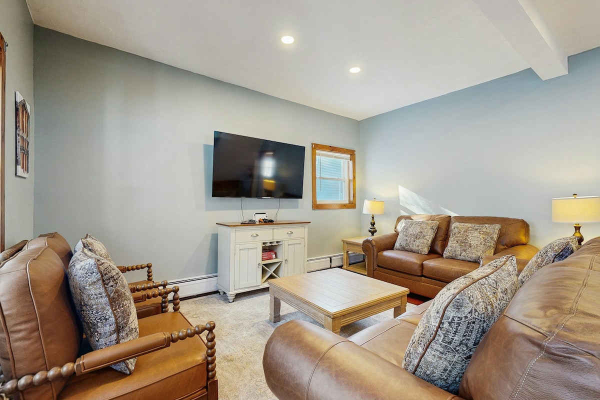 This standalone 3BR, 2BA guesthouse offers direct ski-in/ski-out access on Killington’s Great Eastern Trail. Enjoy a private hot tub, BBQ grill, & deck with stunning views. The cozy living area includes smart TV & high-speed Wi-Fi, while the fully equipped kitchen makes meal prep easy. Bedrooms are spacious & we're pet-friendly. Perfect for families or groups, close to skiing, hiking, & Killington attractions. Book now for the ultimate mountain retreat!