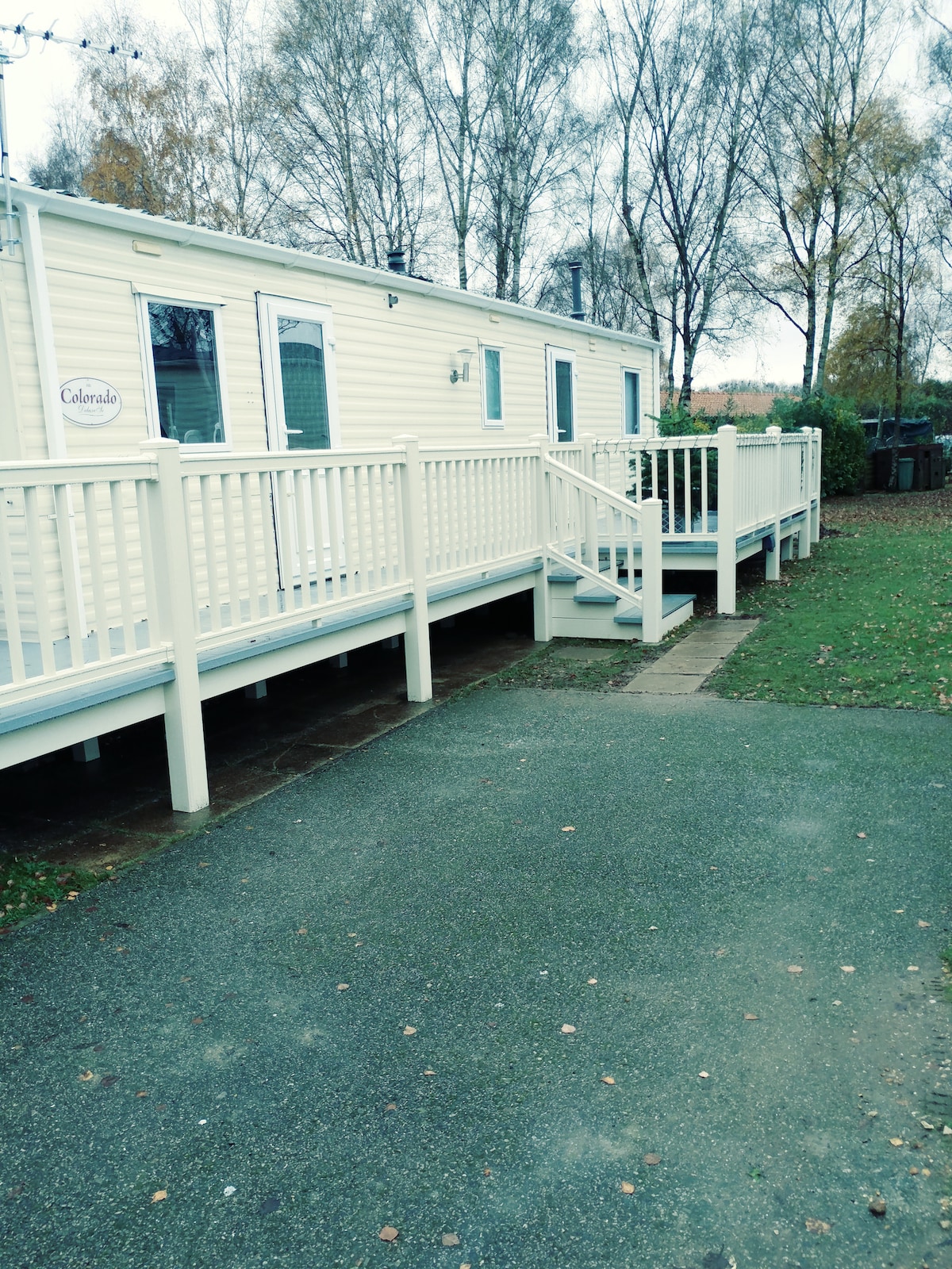 Mi Abi Colorado Deluxe Caravan tiene capacidad para 6-7 personas. Tiene wifi y Netflix Lo sentimos, no se admiten mascotas. La bañera de hidromasaje hundida puede alojar hasta 5 personas, también tiene una función Whirlpool Jet. La iluminación de la piscina se puede cambiar con solo presionar un botón, también hay luces suaves de cubierta azul. 3 dormitorios, uno doble y dos camas individuales (también una pequeña cama doble extraíble sofá cama si es necesario). ubicado en una zona tranquila del sitio, pero a solo 5 minutos a pie del centro, a 3 minutos a pie de un pub/restaurante fuera del sitio .