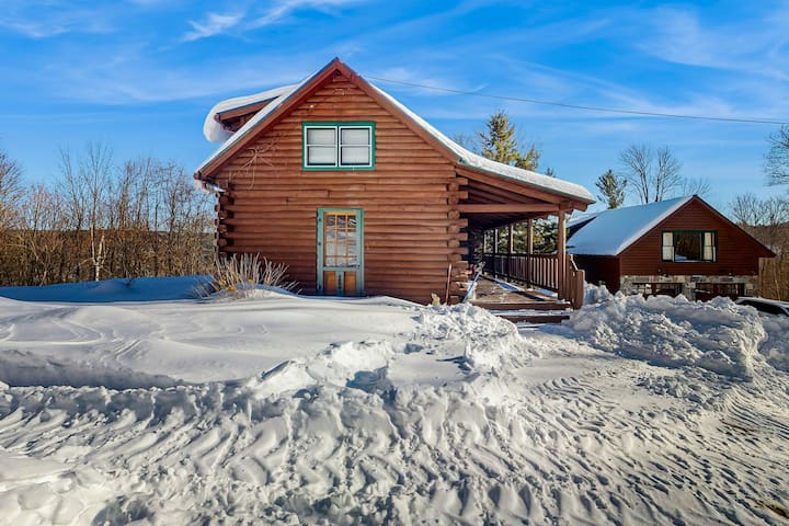 Acogedora casa de troncos de 3 dormitorios y loft estudio, barbacoa, balcón