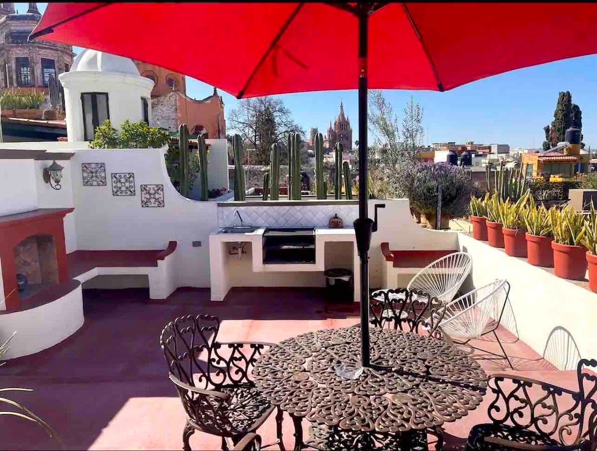 Disfruta de las hermosas vistas del Centro Histórico de San Miguel de Allende. Ideal para una escapada de fin de semana. Hospédate a tan solo 5 min del Centro Histórico y a 3 min del Mercado de Artesanías. Cuenta con un colchón de gran calidad, gran presión de agua en su baño completo, Wifi de fibra óptica, cocina amplia y la posibilidad de servicios de lavandería, ropa de cama y limpieza por un costo adicional. ¡Una limpieza cada 7 noches GRATIS!