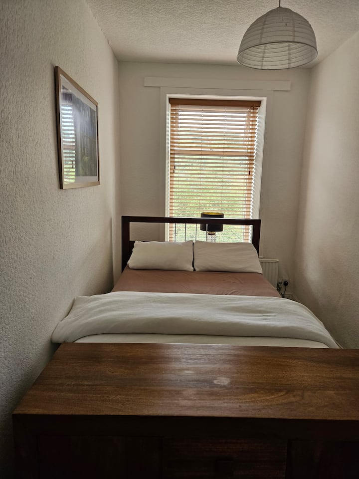 Acogedora y tranquila habitación doble en una casa de nueva construcción.