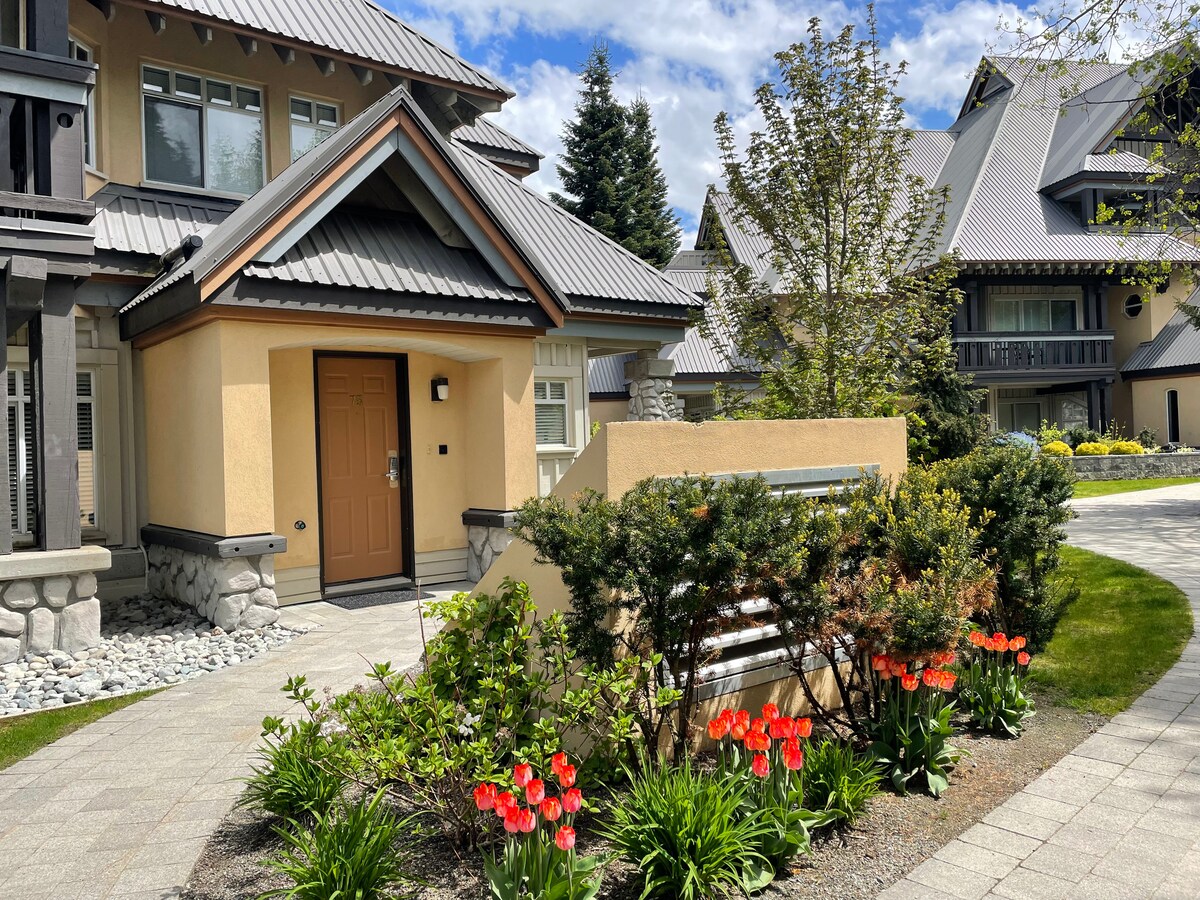 ¡Bienvenido a tu acogedora estancia vacacional en una cabaña ubicada en el exclusivo Upper Village de Whistler! Las casas adosadas de Stoneridge son un verdadero lugar de esquí (o bicicleta) que ofrece tanto la privacidad del bosque de Benchlands como la conveniente proximidad al pueblo de Whistler. Esta casa adosada de dos dormitorios de un solo nivel incluye camas tamaño king y queen, mesa de comedor XL y sofá XL y chimenea de gas con amplio espacio para cuatro personas. Salga a su patio trasero privado y arbolado con terraza extragrande y jacuzzi privado grande.