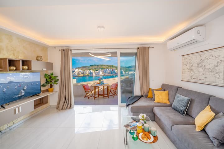 Ático con vistas al mar en Qawra: 2 dormitorios espaciosos