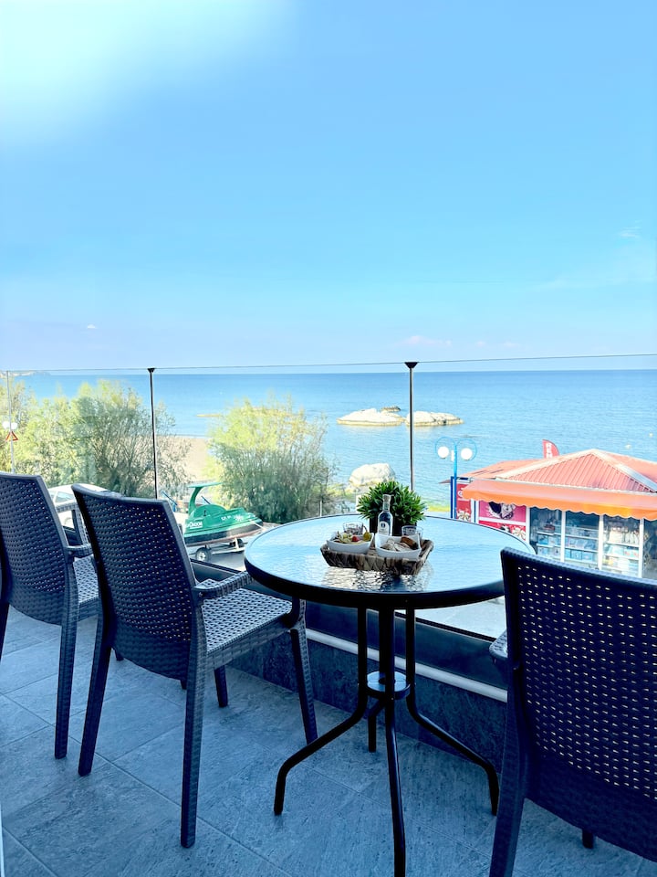 Apartamento blanco de azul, vista ilimitada y jacuzzi