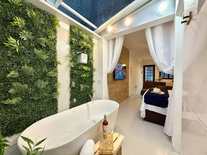 Estudio 400 m mar | Bañera, piscina y barbacoa