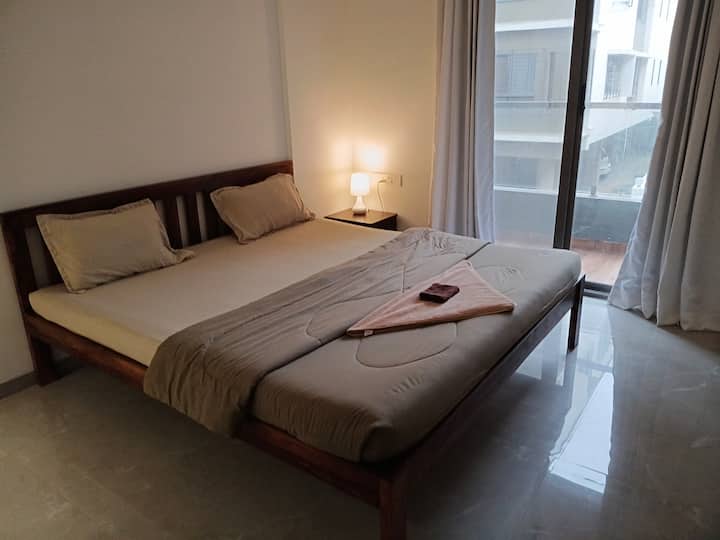Acogedor dormitorio con aire acondicionado, 2 dormitorios, 2 baños, cocina, todos equipados, cerca de la autopista
