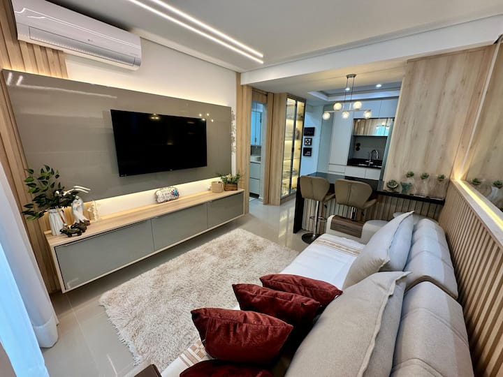 Praia Brava: acogedor apartamento con aire acondicionado y garaje