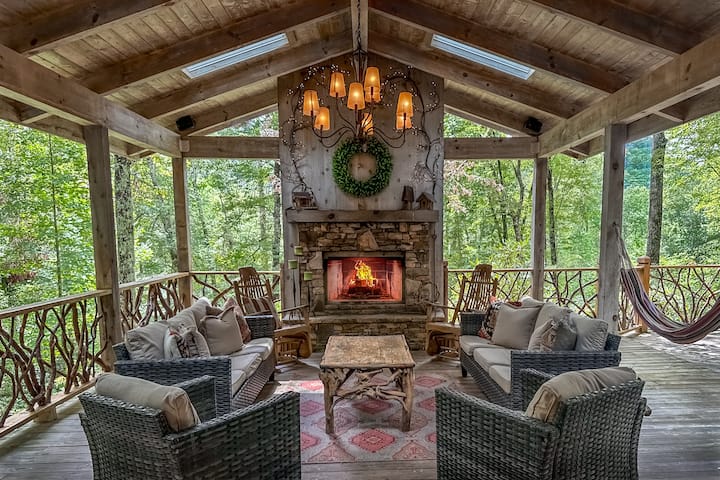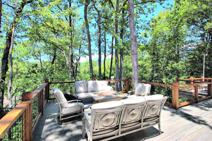 ¡Vistas enormes, bañera al aire libre, chimenea, cerca de la ciudad!