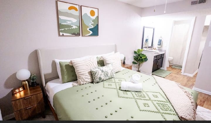 Amplia cama Lux, privada en la planta superior, ¡cerca de ATX!