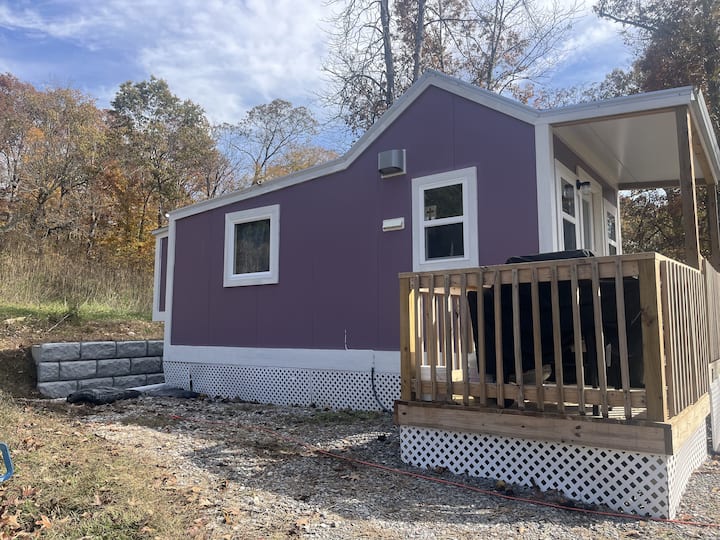 Cabaña en la naturaleza con senderos, fogata y ducha de hidromasaje