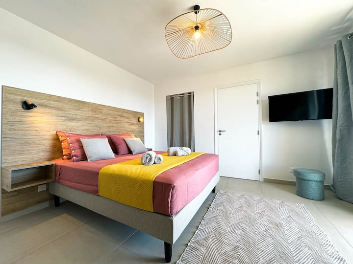 Bungalow Tiki Tahití con piscina y vista de 180° al mar, Arue