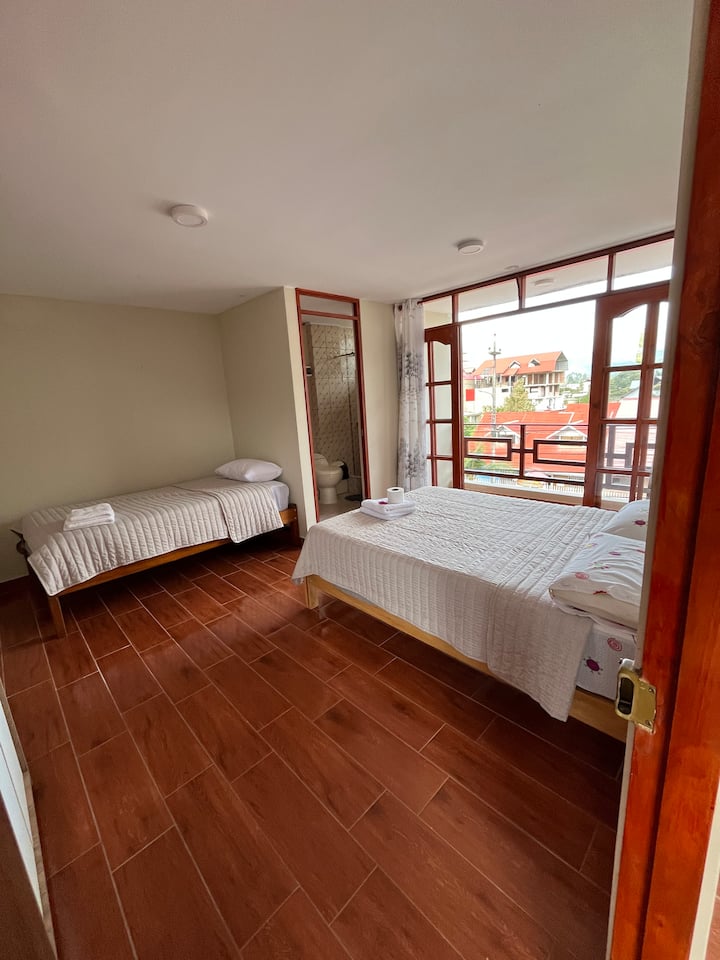 Cómoda hab. c/balcon baño propio cerca al terminal