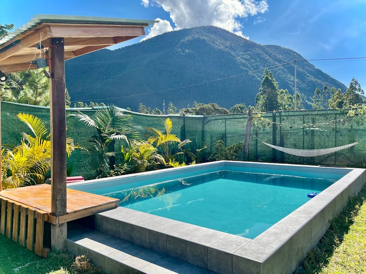 Cabaña para 7 personas. Piscina, parrilla, fogata