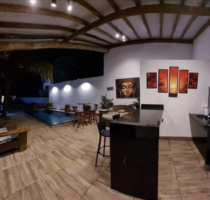 Loft con jacuzzi, playa en el patio con vistas de cine