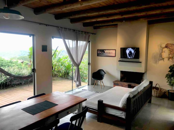 Chalet con chimenea, aire acondicionado, privacidad, 6 cuotas sin intereses