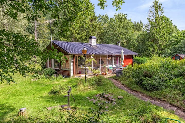 Acogedora cabaña en el bosque con sauna cerca del lago.