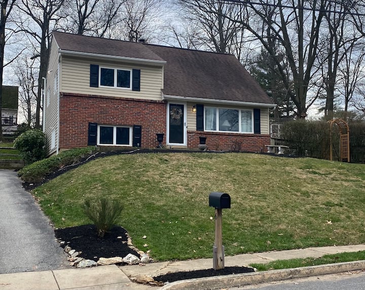 Habitación privada azul, baño de lujo, a poca distancia de Bryn Mawr