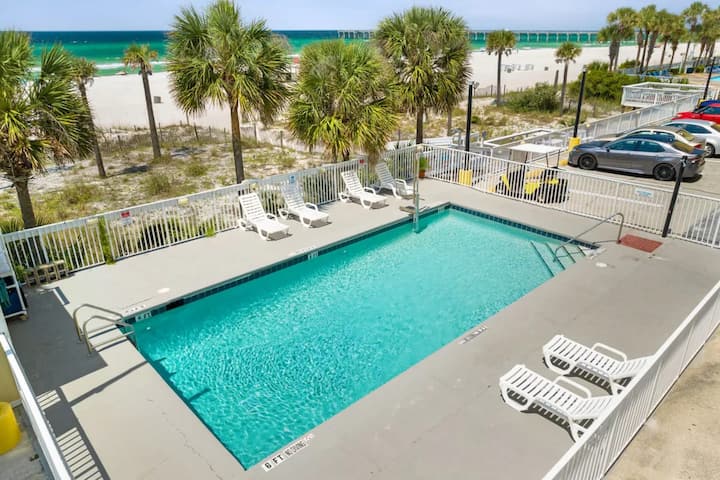 2 dormitorios, 2 baños, remodelado, frente a la playa, cama tamaño king y zona de trabajo