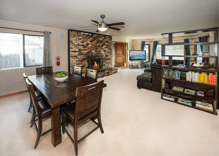 Estudio con cama tamaño king y chimenea, a poca distancia a pie de la telecabina o el lago