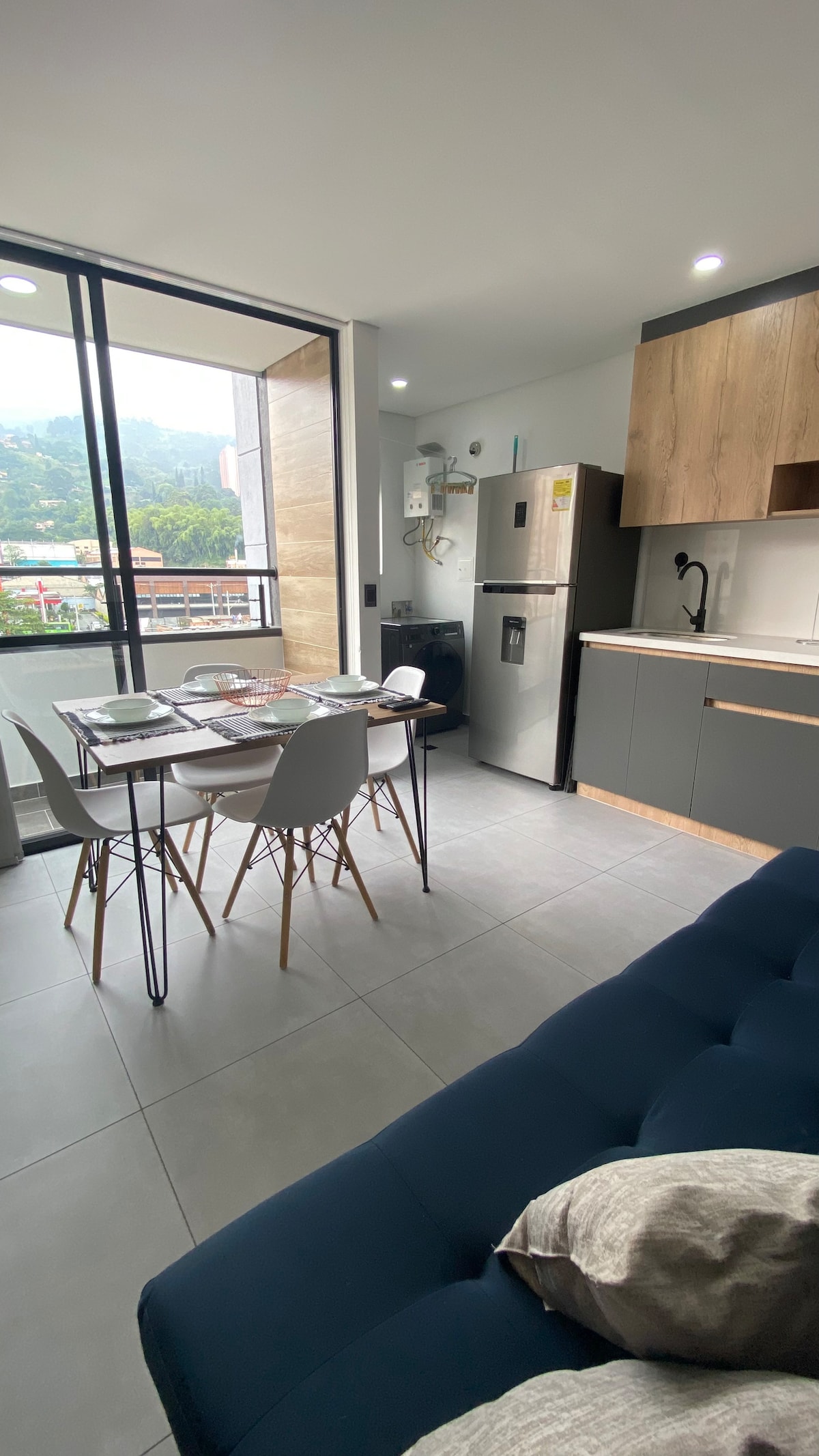 This cozy apartment on the 31st floor offers a bedroom, a sofa bed, a fully equipped kitchen, and a balcony with breathtaking views. It’s perfect for relaxing or exploring the area. About the Area: Located in Sabaneta, a vibrant neighborhood known for its charming parks, diverse dining options, and convenient access to shopping and public transportation. The apartment is currently located in a completely new building, so some common areas are not ready.