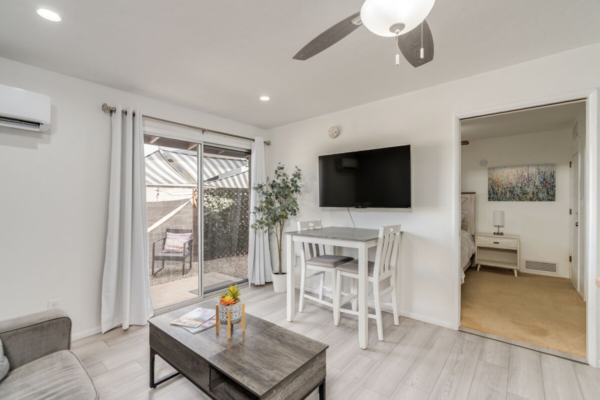 Este encantador estudio con un colchón nuevo está preparado para estancias largas y cortas: --Internet rápido y escritorio de trabajo exclusivo --Armario y cómoda para tus cosas --Entrada privada y aparcamiento dedicado fuera de tu puerta --4 minutos a pie de Whole Foods -- En el centro de Tucson, cerca de la universidad, los hospitales, el centro de la ciudad y casi todo lo demás. -- Totalmente amueblado con microondas, olla, arrocera, ollas, licuadora, horno tostador y todo lo demás que necesites. - ¡Patio completamente vallado, los perros son bienvenidos!