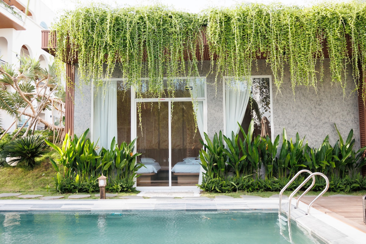 Habitación con piscina privada: El refugio ideal para una estancia romántica en Phnom Penh, con el dormitorio, baño separado que se abre a un patio privado y su piscina de inmersión de 6 x 3 m (no climatizada). 20 metros cuadrados, más área privada al aire libre. Todas las habitaciones de la piscina son únicas. Nuestros lavabos del baño no tienen agua caliente. 20 metros cuadrados, además del área privada al aire libre. Para 2 huéspedes. Visa, Mastercard, JCB y ABA Pay aceptados.