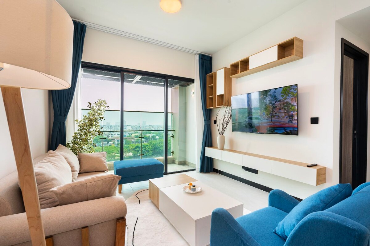 ✨ Special 8% off promotion for long stays. An exquisite urban living right at Nguyen Luong Bang Commercial Road. The creative hub of worldwide “Hybrid Working Life”, where Live – Work - Experience integrates harmoniously. - 2BR, 2-bathroom in a BRAND-NEW building. - Our fully furnished amenities offer everything you need. You can relax and unwind comfortably with modern decor and a warm atmosphere. - 1,4km to SECC. - 1,7km to Crescent Mall. - 8,3km to Ben Thanh Market.